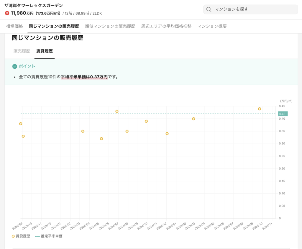 タワマン実勢家賃・中古販売価格の推移を具体的にみる①「ザ・湾岸タワーレックスガーデン」に見る(2023〜2025)