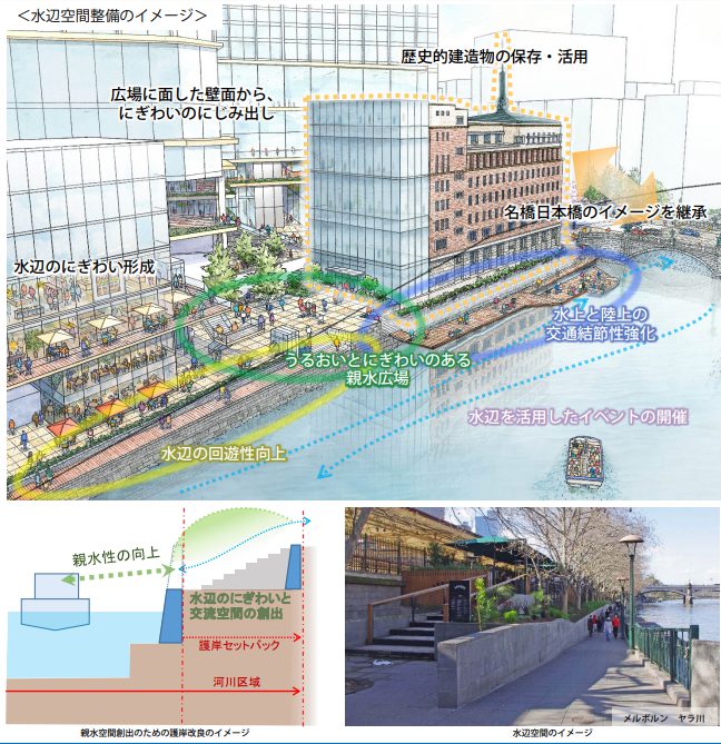 引用PDF:都市再生特別地区(日本橋一丁目中地区)都市計画(素案)・概要・水辺空間整備のイメージ