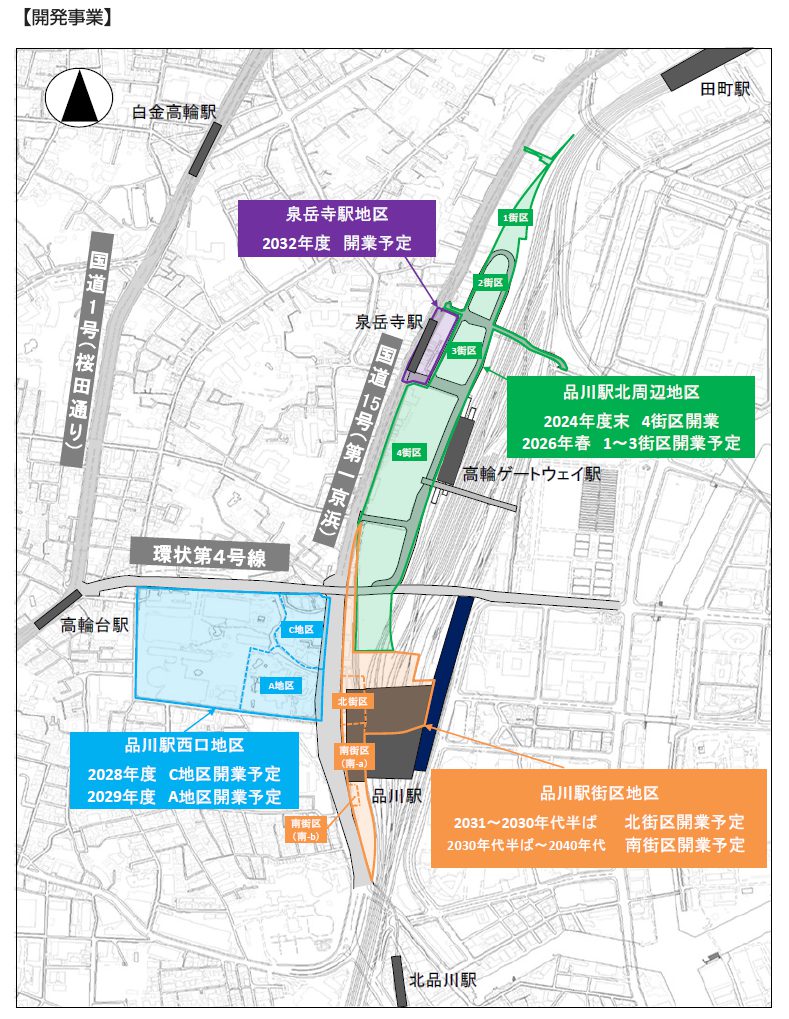 駅構造の刷新と段階的再開発が進行中。商業・オフィス・居住機能が再編され、街の使いやすさが向上。 - 高輪ゲートウェイ