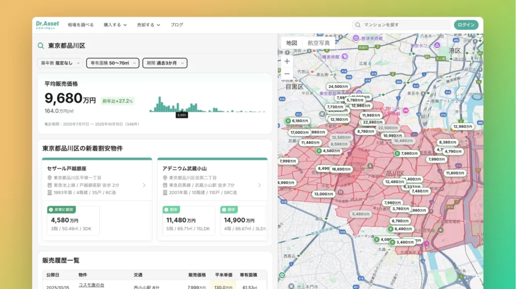 ドクターアセットで、気になる街の最新のマンション相場が簡単にチェックできるようになりました。